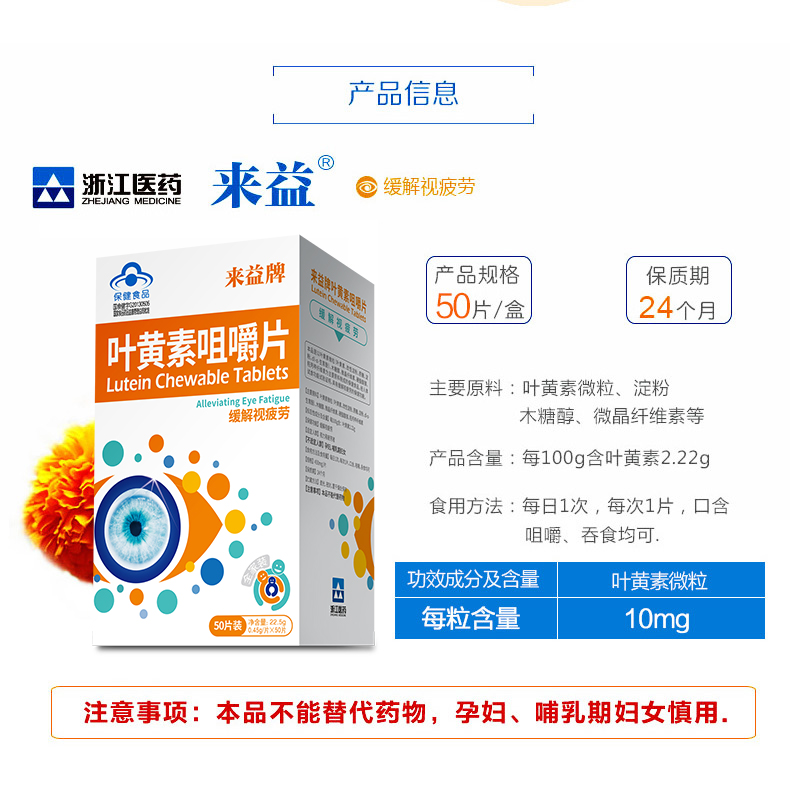 首页> 护眼专区> 保健食品> 叶黄素> 来益牌 叶黄素咀嚼片 450mg*50片